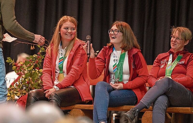 Mit musikalischer Begleitung der Steppin Stompers war es eine grossartige Feier, die der noch jungen Athletin und ihren Teamkameradinnen gewidmet war, die auch immer wieder für Fotos im Saal posieren mussten. Michèle Bertschi war über die eindrückliche Feier sichtlich bewegt, aber der Rummel über ihre Person bereitete ihr keine Mühe. «Es fühle sich als Weltmeisterin richtig gut an», gab sie freudig zu Protokoll.